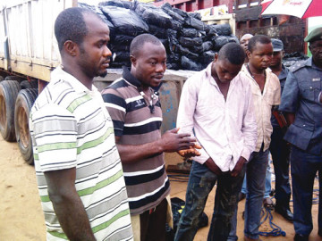 The suspects included the driver of the Dangote truck, Pascal Vincent; driver of the 911Mercedes truck, Boniface Okoye; and two others, who claimed to be ordinary drivers assisting the smugglers of the contraband to convey the goods to Onitsha and Aba.